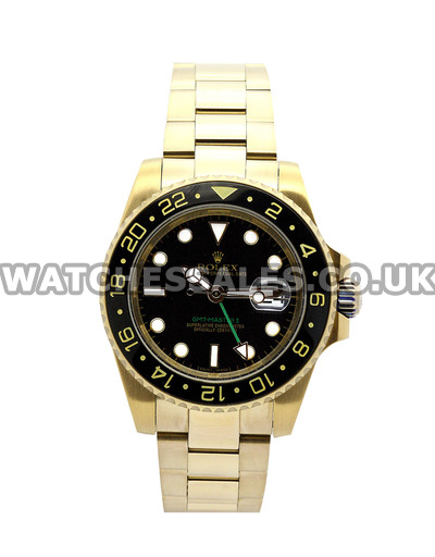 The best fake Rolex GMT Master II watch is made from polished 18ct gold. In 42 mm, the perfect fake watch with black dial is designed for male wearers. The most typical and practical feature of this series is its GMT function.