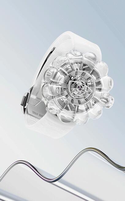 “Up until now, my work has focused on colour. It was a really exciting challenge to start a whole new chapter focussing on absolute transparency. The forms and volumes are perceived completely differently. With Hublot, we were able to preserve the individuality of my floral motif, but with a unique and different identity which was purer and perfectly in tune with Hublot’s mechanical universe. I’m very proud of the result!” – Takashi Murakami